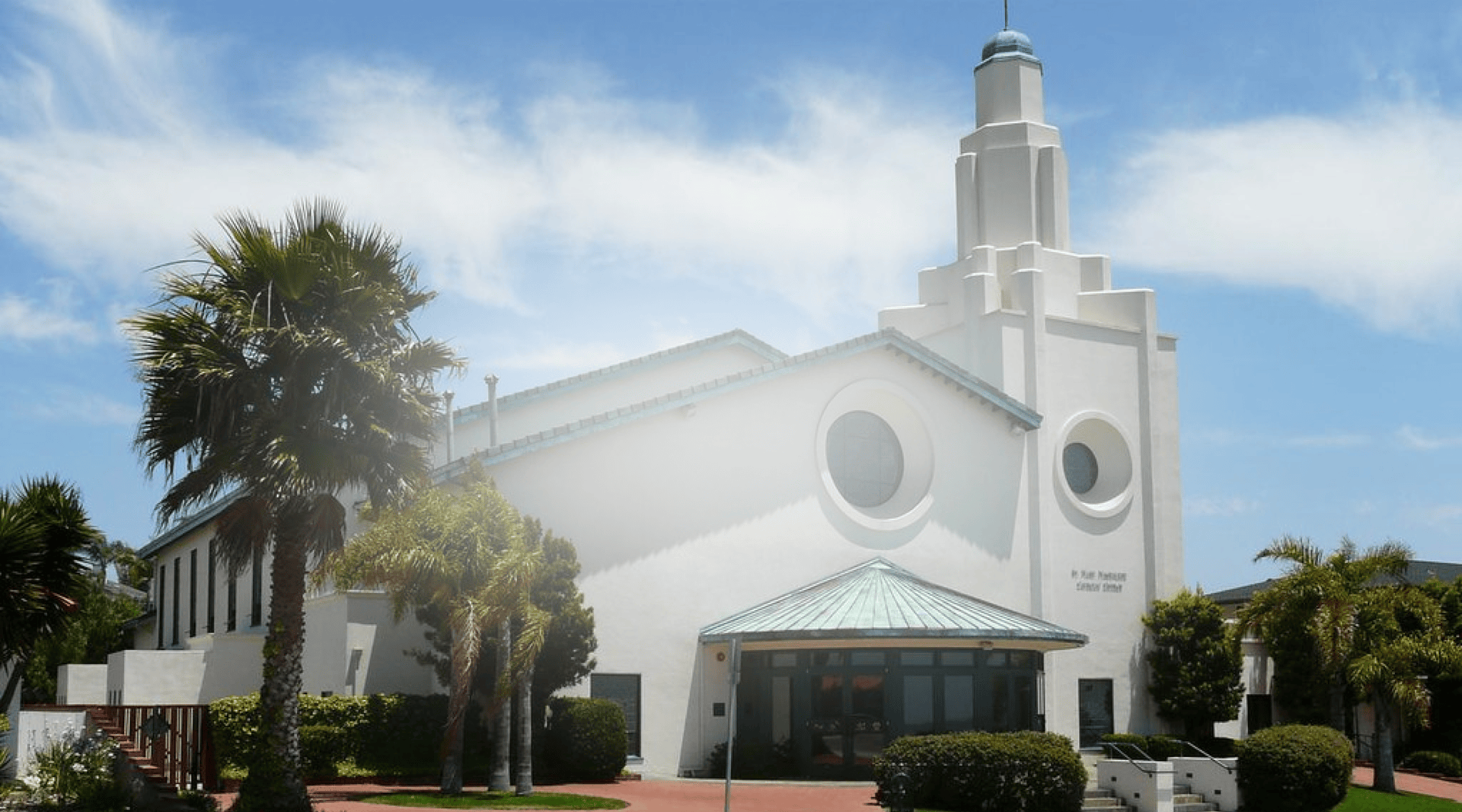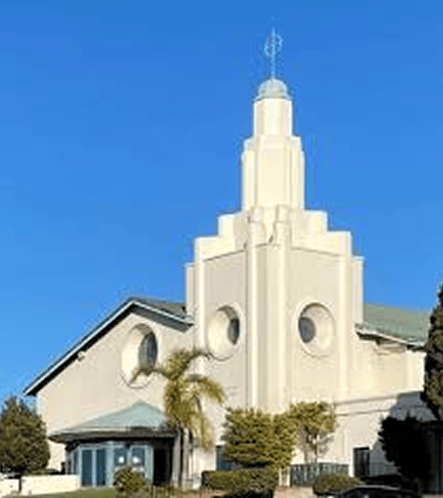 Construction soon began with grading, pouring the auditorium slab, and laying the foundation for the rectory. By late 1956, steel was raised and transported from San Diego’s port to the church site.